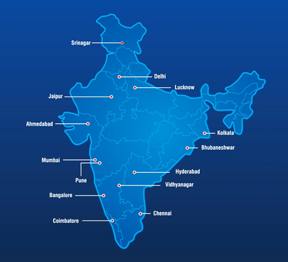 Indamer Aviation Private Limited had presence at (14) fourteen locations across India. It has major maintenance and line maintenance facilities. The locations are;